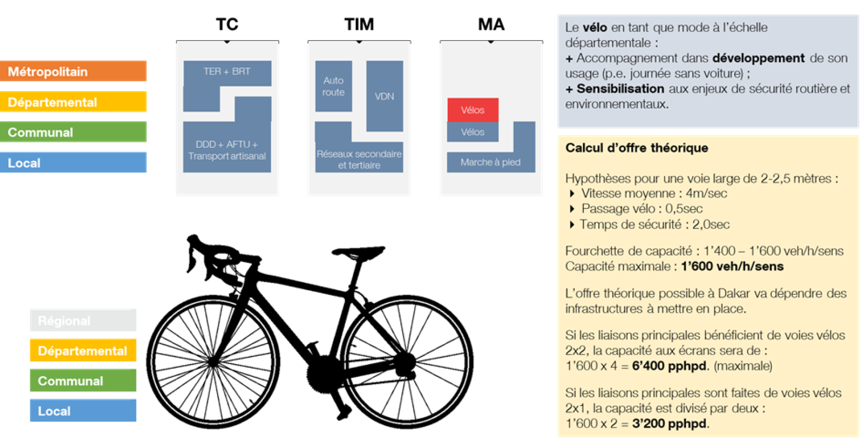 Un deuxième scénario a donc été présenté pour lequel, au-delà du développement du TCSP et d'un réseau de voirie hiérarchisé, des actions sur la structure urbaine et sur les modes actifs – vélo et marche à pied – sont déclinés. Bien que cette alternative vienne bouleverser certaines habitudes et met en question des pratiques actuelles de mobilité des Dakarois et des Dakaroises, ce scénario appelé "TCSP et ville apaisé" prévoit une nette amélioration de l’accessibilité et de la fluidité à l’échelle métropolitaine et à l’échelle locale. Il permet également de s’affranchir d'une vision traditionnelle qui veut que seule l'augmentation de l’offre de transport par la construction de nouvelles infrastructure est en mesure de répondre à une demande croissante.