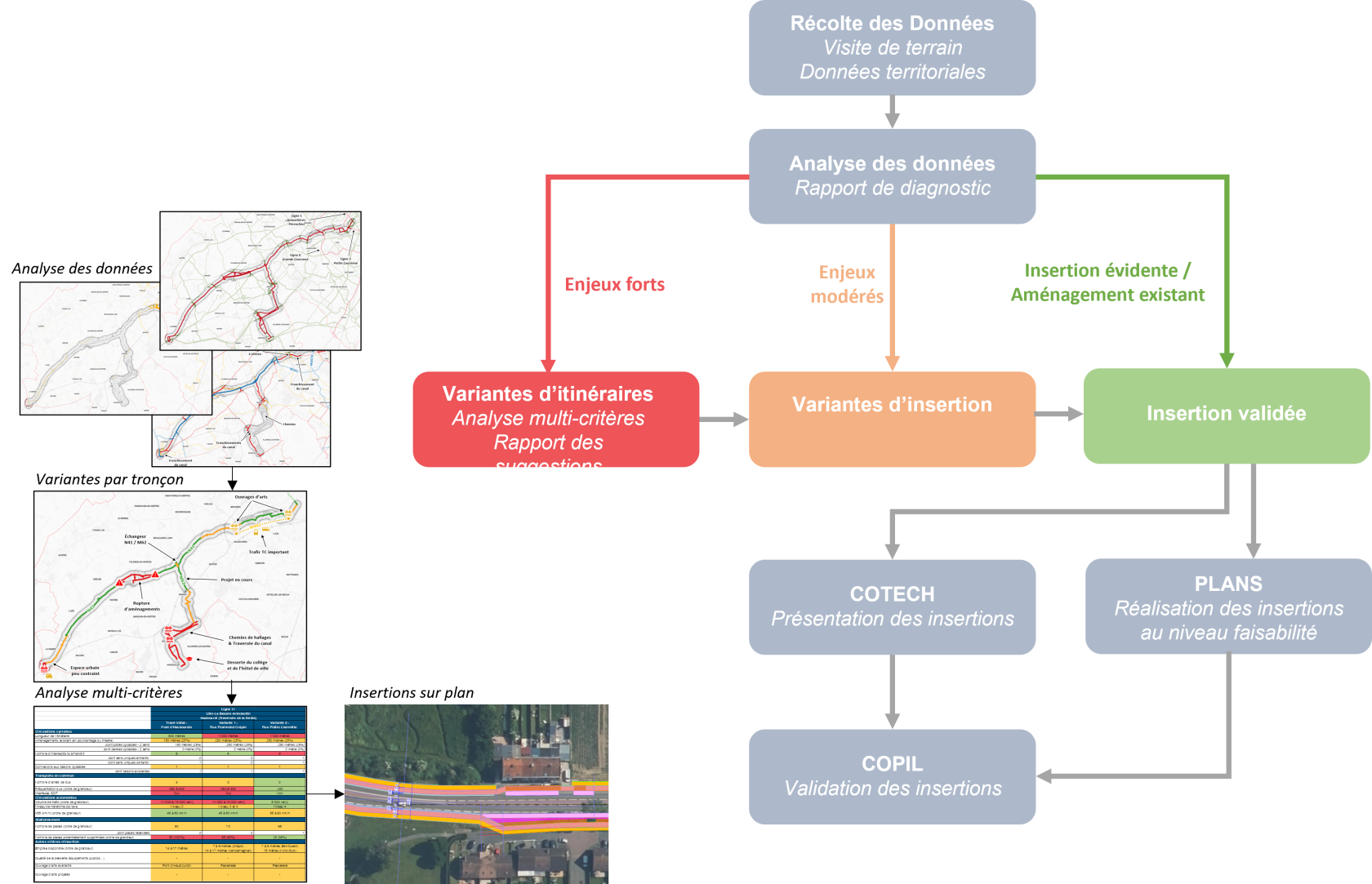Fidèle à ses méthodes et sa vision des problématiques de mobilité, Transitec a réalisé ou réalise l'ensemble de ces études avec une approche transversale, en tenant compte des enjeux multimodaux et selon une approche multiscalaire depuis l'échelle de la rue pour garantir la faisabilité des propositions, à l'échelle de la Métropole pour assurer la cohérence avec les concepts et objectifs globaux.