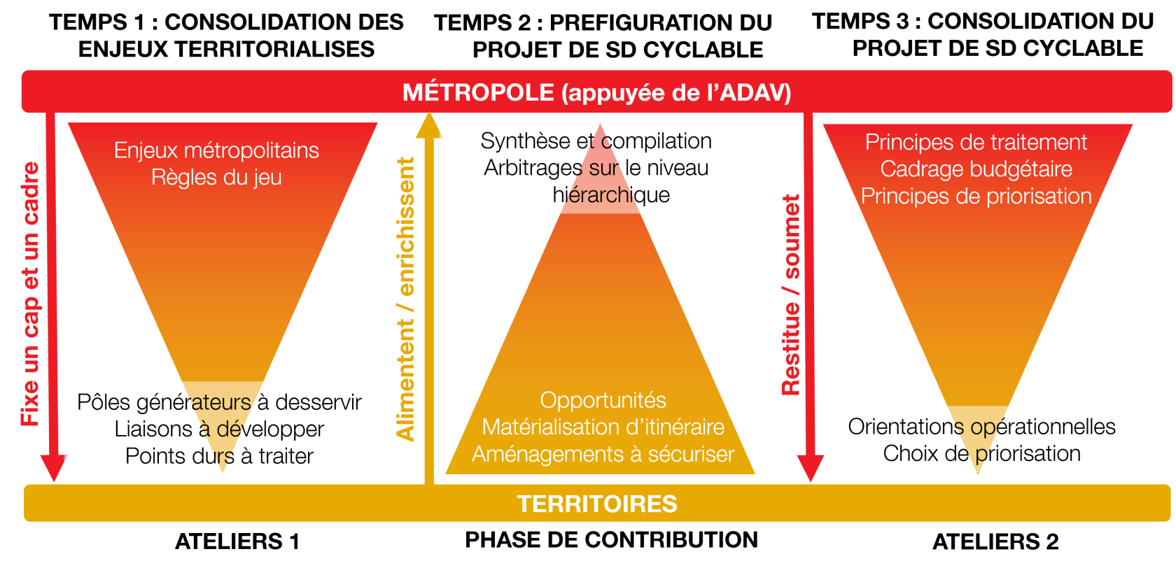• consolidation du Schéma Directeur cyclable métropolitain & construction du réseau « Vélo+ » (réseau express vélo) co-construit dans le cadre d’une démarche partenariale avec les services de la Métropole, les communes et l’ADAV ;