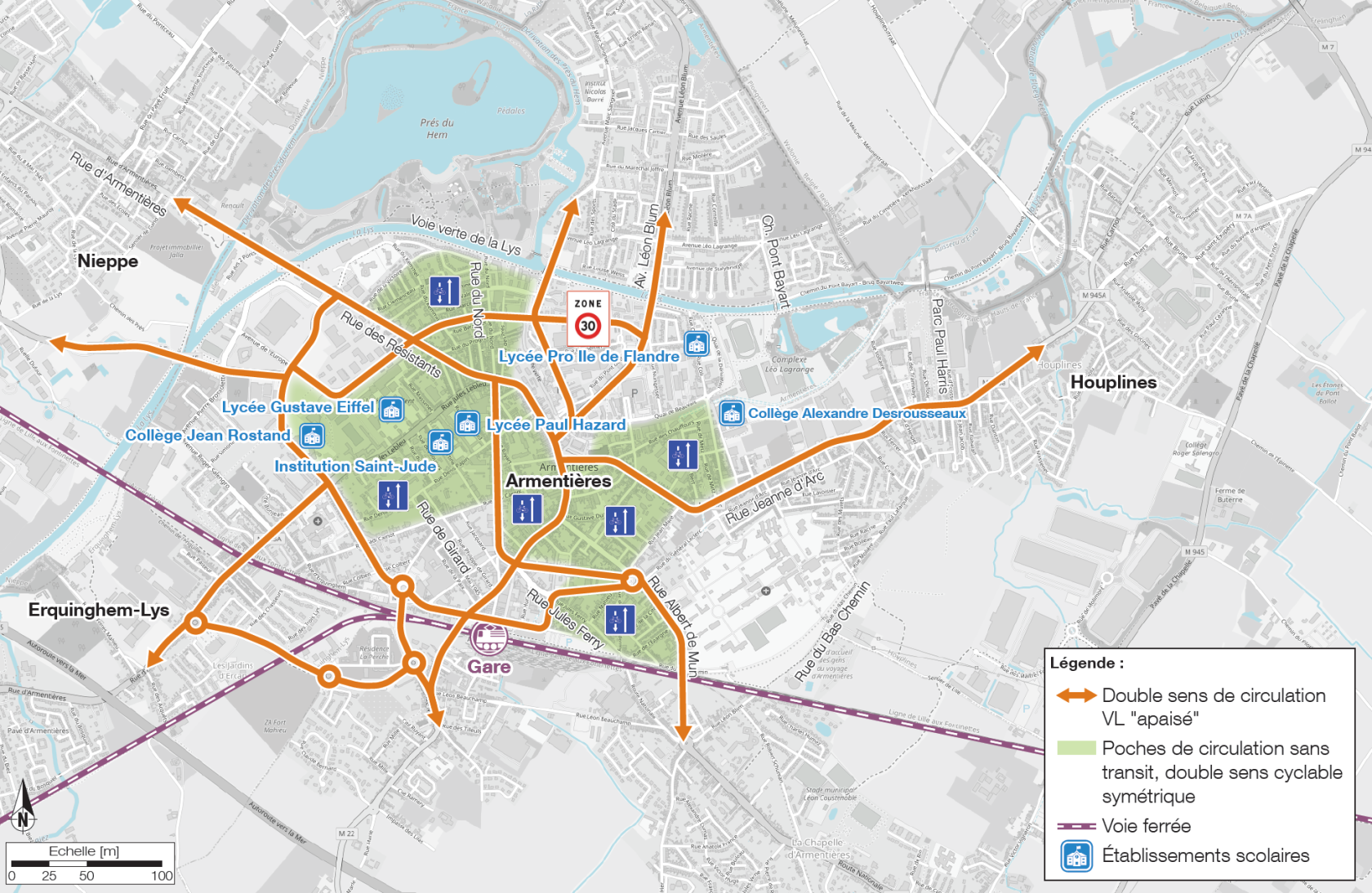 Mais quelle satisfaction lorsque celles-ci se concrétisent en moins de 12 mois ! Y compris au delà du périmètre de réflexion initial, qui était celui des collèges et lycées de la commune d'Armentières. Dans une démarche exemplaire de mobilisation partenariale, d'engagement des établissements scolaires et des collectivités concernées, la MEL et la commune d'Armentières ont réussi à porter, et faire valider, un projet ambitieux, au bénéfice de la cyclabilité et de la marchabilité du territoire, et notamment à destination des publics scolaires.